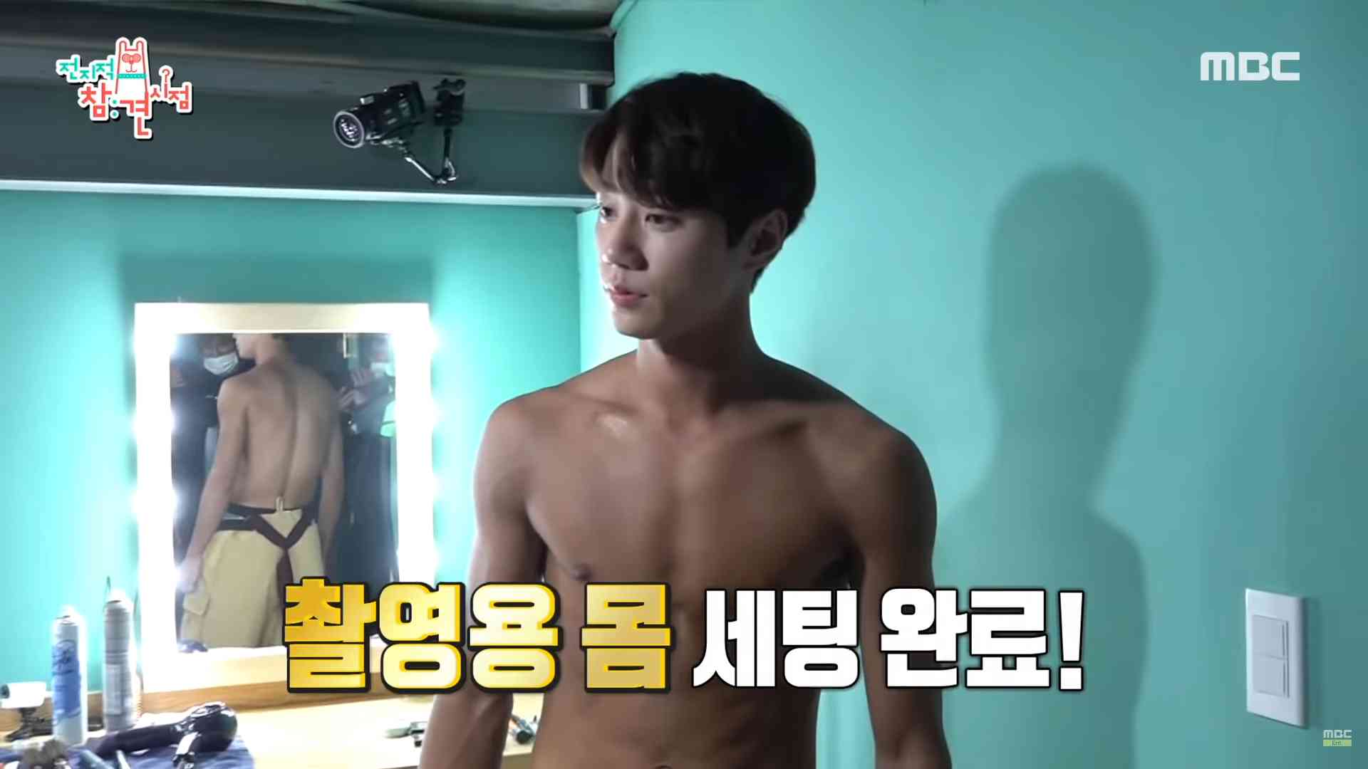 너무 몸짱들이 많아 오히려 움츠러드는 모습을 보여주는 이준영입니다. 이준영은 체지방이 4.5% 밖에 안 된다고 하는데요, 스스로도 살 안찌는 체질이라고 고백하기도 했습니다.