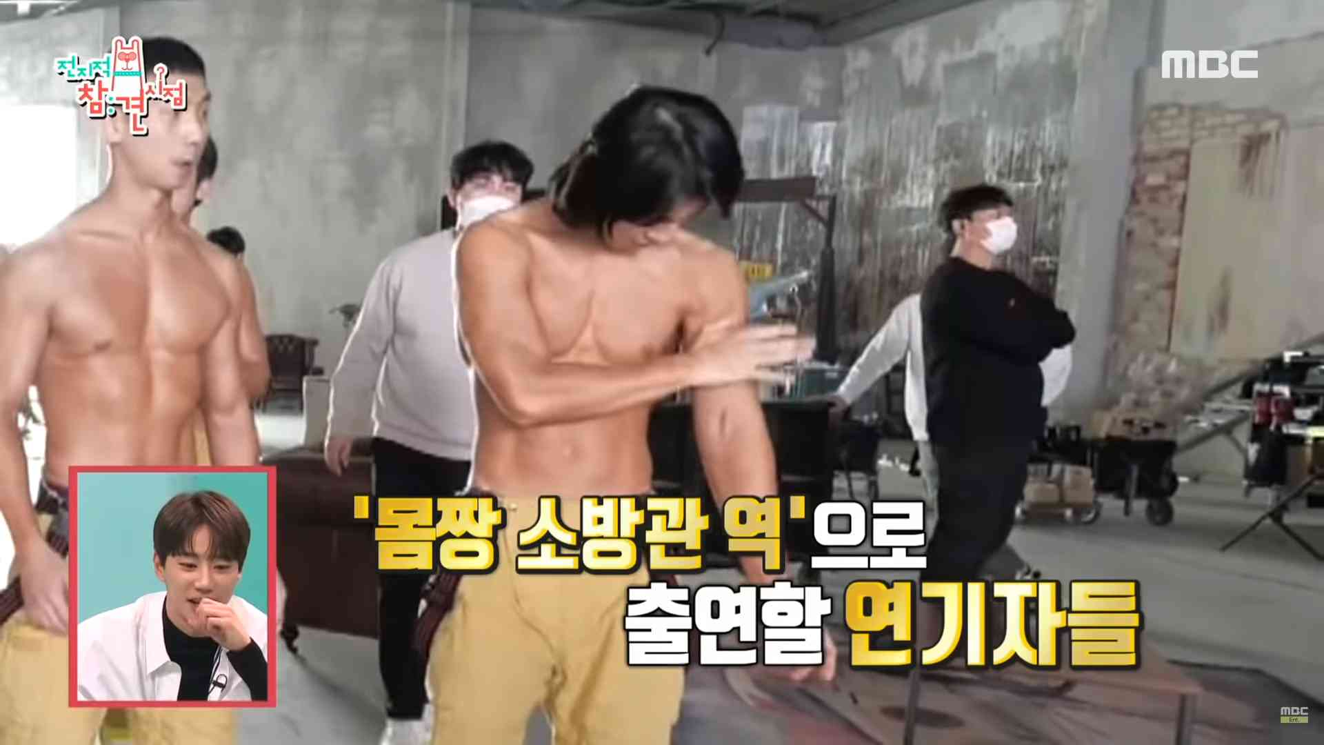 이준영의 몸짱 소방관 모습 촬영을 위해 개그우먼 홍윤화도 특별히 출연하고, 몸짱 소방관 역으로 출연할 연기자들도 모습을 드러냅니다.
